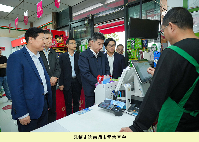 10月30日,国家烟草专卖局党组成员、副局长陆捷在江苏烟草调研。