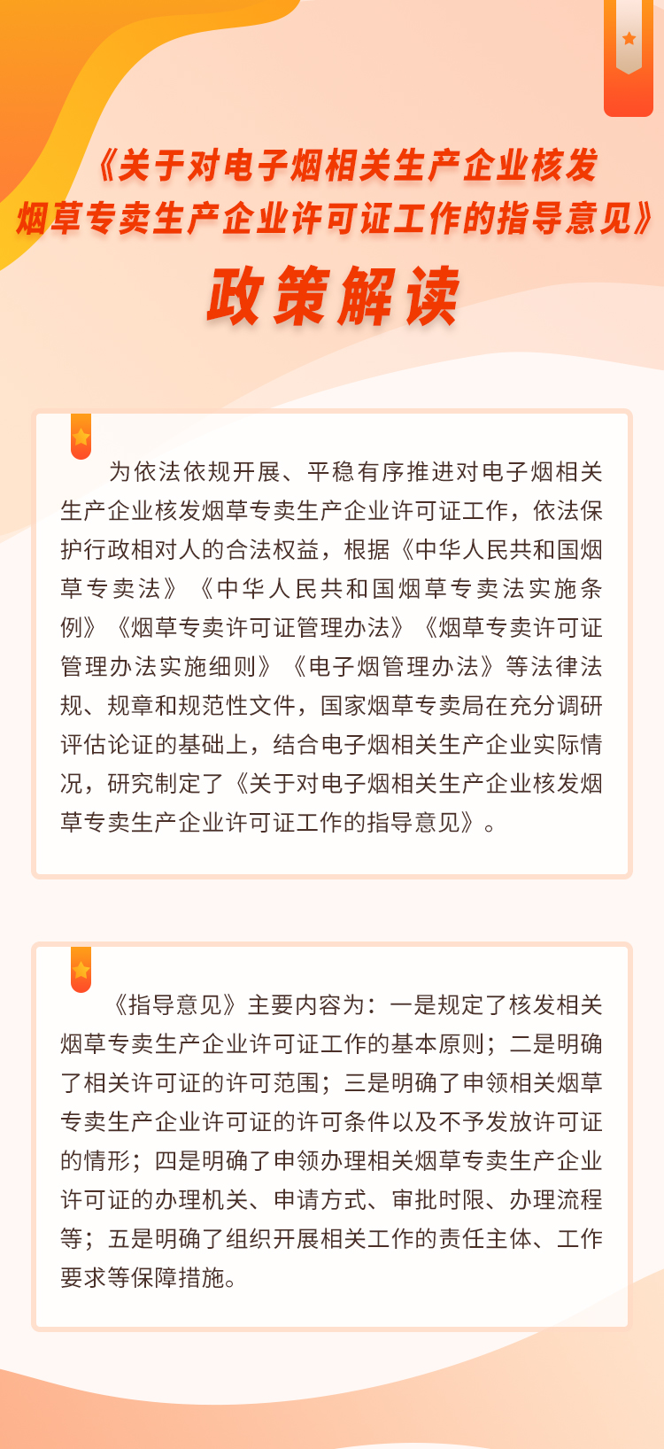 链接:《关于对电子烟相关生产企业核发烟草专卖生产企业许可证工作的指导意见》政策解读